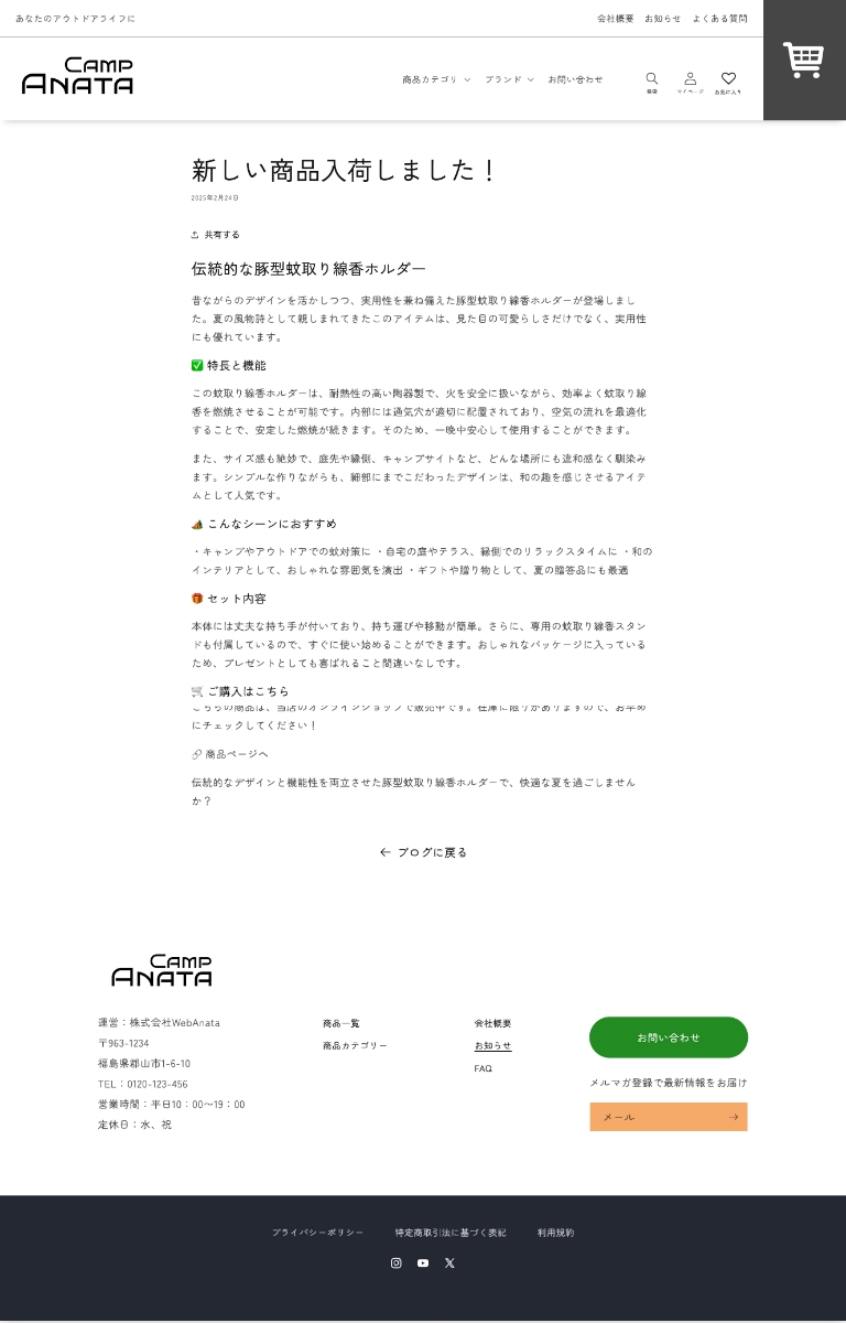 Liquidを使ってオリジナルセクションを作ったり、ヘッダーやフッターをカスタマイズしています。